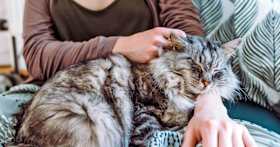 Make vet visits less stressful by choosing a feline-friendly and fear-free certified vet, skipping meals just before the visit, gradually counterconditioning and desensitizing your cat to their carrier and the car, and using a pheromone spray. If your cat still shows signs of stress, your vet can prescribe a medication to help them relax. Alternatively, consider a mobile vet service, where the vet comes to your home for a low-stress exam.